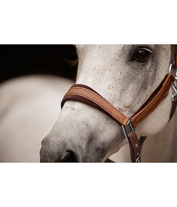 Sprankelend glitterhalster met zachte voering in fluweellook aan nek-, neus- en bakstukken. Aan één zijde in grootte verstelbaar bij de nek- en kinriem. Op kleur afgestemd beslag. 100% polypropyleen.