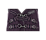 Onze absolute bestseller - nu opnieuw ontworpen met verbeterd buitenmateriaal voor nog meer scheurvastheid, duurzaamheid en betere waterdichtheid, maar met hetzelfde comfort voor je paard als voorheen! Functionele en bijzonder scheurbestendige outdoordeken met highneck gemaakt van 1.680 denier nylon met zeer hoge waterdichtheid (waterkolom 5.000 mm) en zeer goed ademend vermogen. Vergeleken met polyester is nylon aanzienlijk zachter en zijdeachtiger en heeft het een glans. Tegelijkertijd is nylon vele malen rekbaarder dan polyester, waardoor het beter bestand is tegen scheuren. Voorzien van een medium 100 g vulling. Ontlastende stretchinzetten in de schouder-/nekzone van elastisch, zeer waterafstotend softshell-materiaal en royale inzetstukken zorgen voor optimale bewegingsvrijheid, garanderen een uitzonderlijke pasvorm en voorkomen de klassieke, ongewenste drukpunten. Royale binnenvoering op de hoge hals voor extra drukvermindering bij de schoft. In de breedte verstelbare drievoudige balanssluiting aan de voorkant met 2 karabijnhaken en 2 ringen en extra, verbeterde klittenband. De karabijnhaken kunnen indien nodig eenvoudig worden vervangen. Gladde, vachtvriendelijke binnenvoering. Verstelbare kruissingels en voorziening voor optionele bevestiging van bilkoorden. In lengte verstelbare staartriem en staartflap met reflecterende strips en reflecterende biezen rondom. Perfect te combineren met de bijpassende borsttussenstuk Artikel 422 664. 100 % nylon buitenmateriaal, 100 % polyester voering.