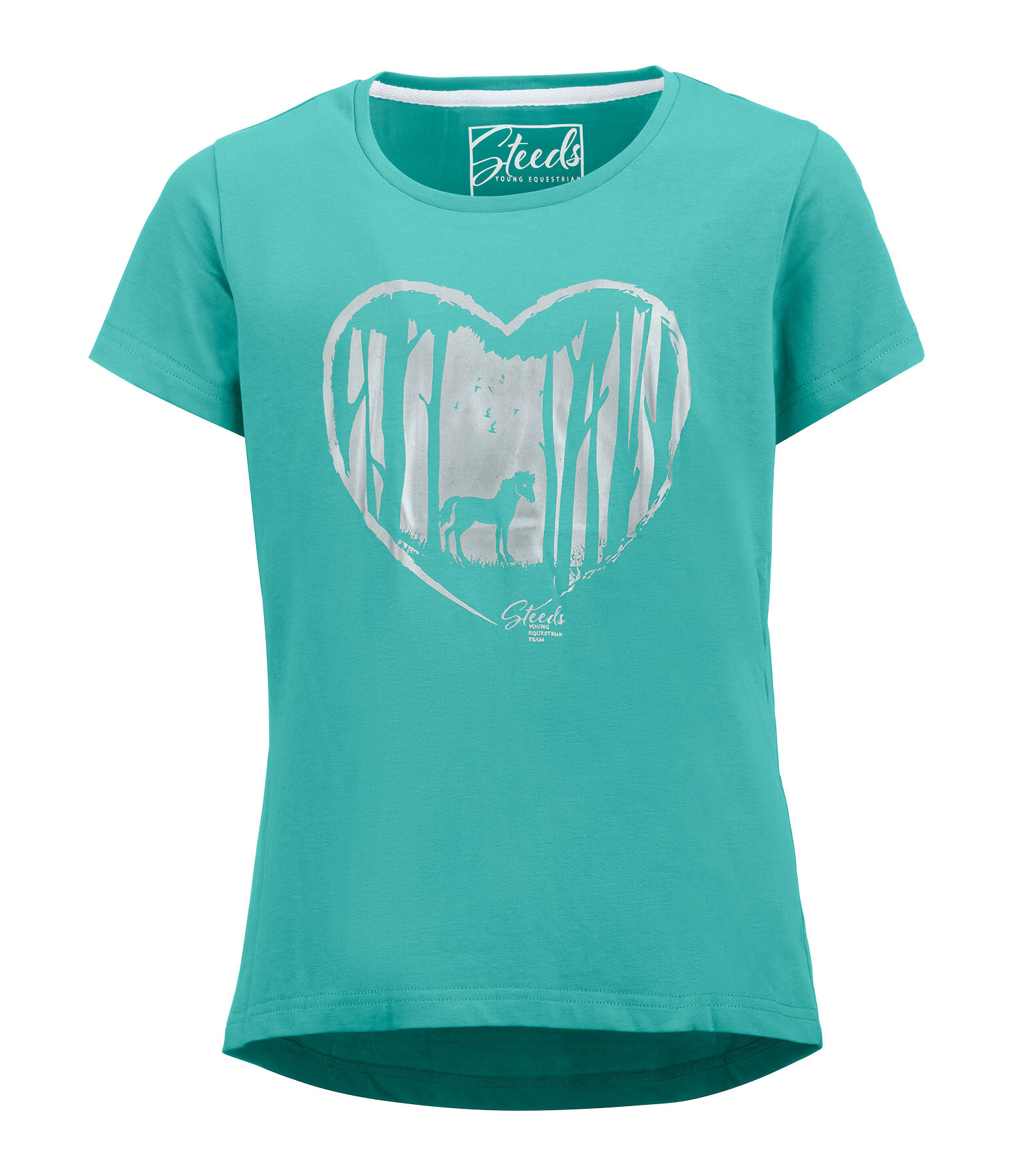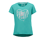 Ademend kids T-shirt van superzacht materiaal met een prachtig glitterprintmotief op de voorkant. Ronde hals. 75 % katoen, 25 % polyester.