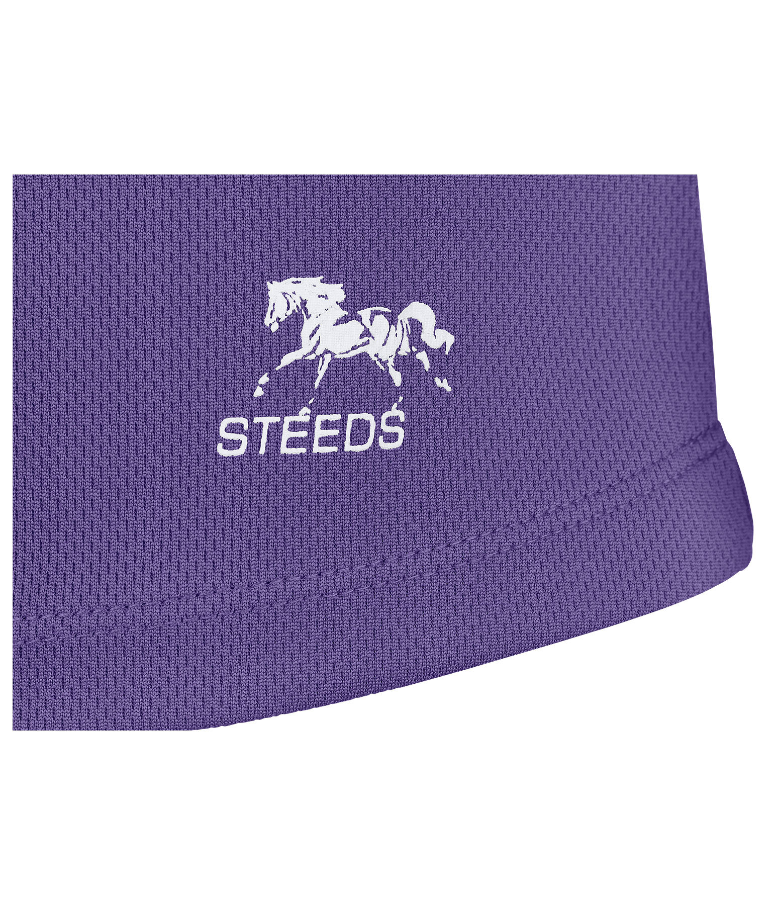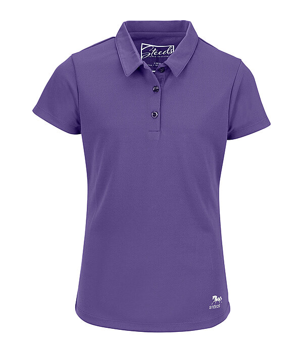 Rekbare functioneel rijshirt voor kinderen met knoopsluiting en STEEDS-prints onder de kraag aan de achterkant en op de zoom aan de voorkant. Gemaakt van ademend en sneldrogend materiaal. 100% Polyester.