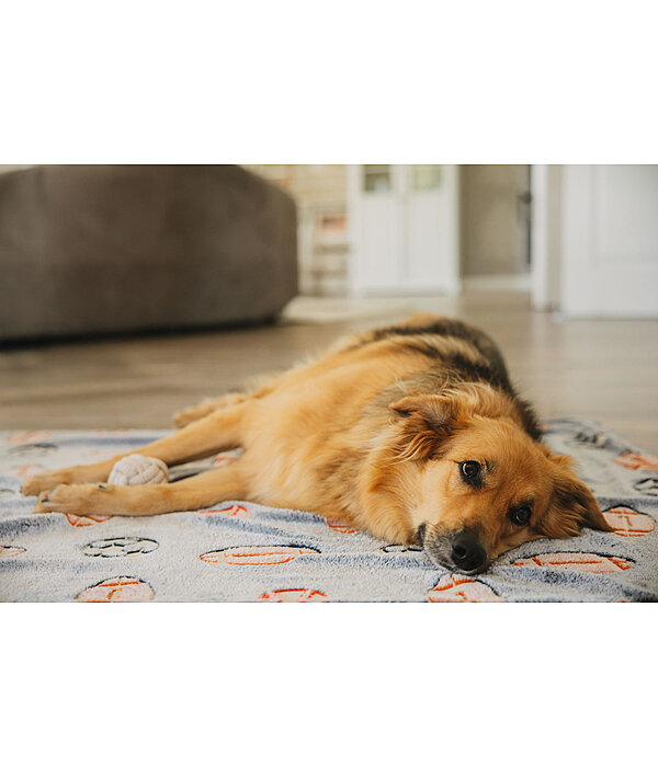 Knuffeldeken met patroon van teddyfleece, geschikt om op te liggen tijdens het reizen of als inleg voor een hondenbox of -mand. Het patroon is ingewerkt met garen waarvan een deel kan oplichten in het donker na blootstelling aan zonlicht of kunstlicht. 100 % polyester.