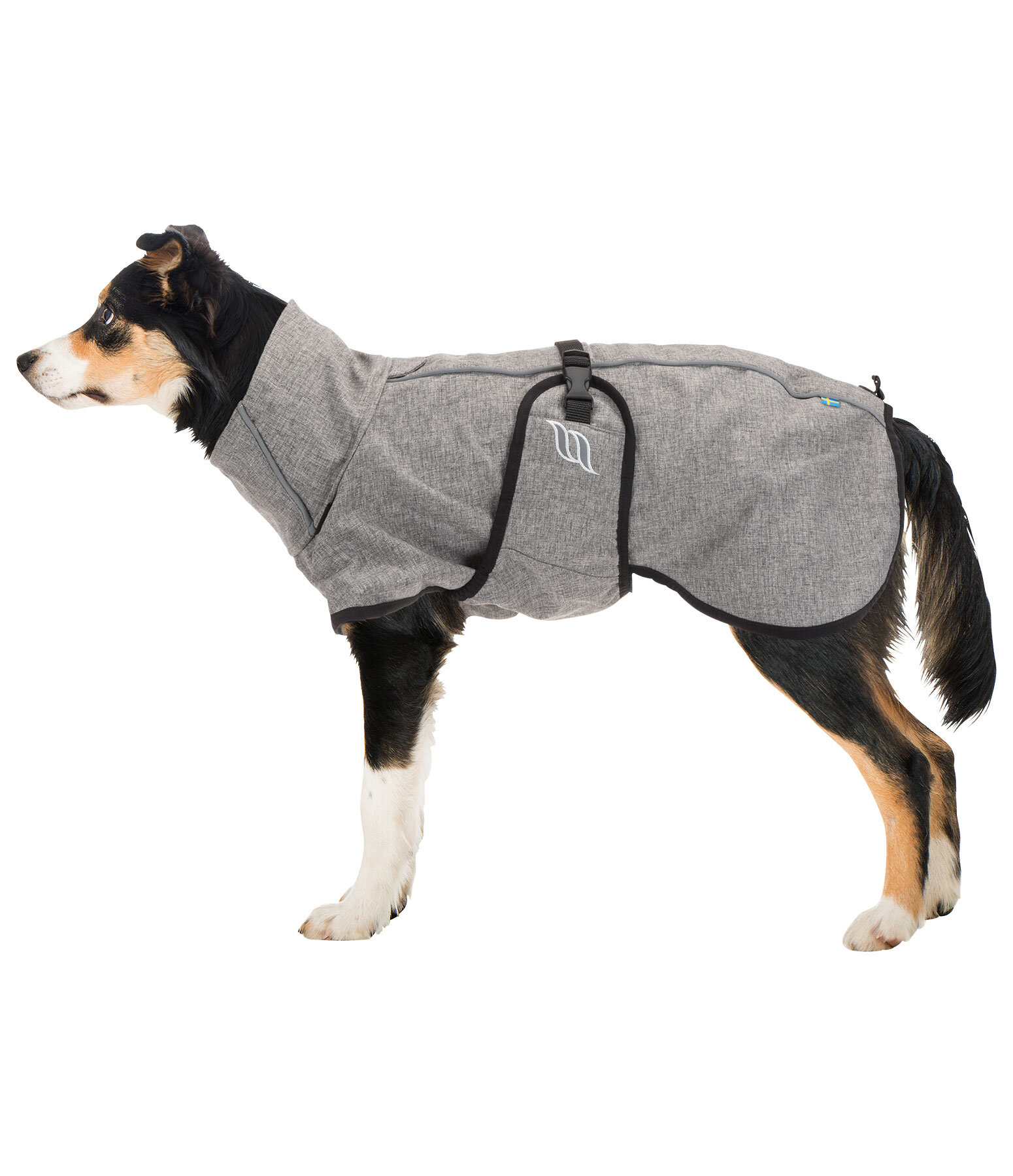 De wind- en waterafstotende hondenjas Bark beschermt je viervoeter dankzij de uitlopende hoge hals en een elastische buikflap, zonder hem in zijn bewegingsvrijheid te beperken. Hij heeft een elastisch trekkoord over de staart om de lengte van de rug individueel aan te passen en zo nodig een goede pasvorm voor honden met een hoge staart mogelijk te maken. De jas is licht en gemakkelijk aan te trekken en te verstellen met een gesp op de rug. Klittenbandsluitingen aan de zijkanten voorkomen dat de buikband afglijdt. De hoge hals heeft ook een trekkoord om een veilige bescherming te bieden tegen regen en sneeuw. De binnenvoering van de jas is voorzien van Iontex® om de bloedsomloop te stimuleren. Dit kan beschermen tegen onderkoeling en houdt de spieren van de hond soepel in alle weersomstandigheden. De jas heeft ook een verborgen doorgang voor een halsband en harnas. Hij is goed zichtbaar in het wegverkeer, zelfs in de schemering, dankzij de vele reflecterende details. De fabrikant adviseert het model Bark voor normale tot slankere honden. Voor stevigere honden met veel borst en nek wordt aangeraden een maat groter te kopen. Machinewasbaar op 40 graden, niet in de droger. Buitenmateriaal 95% polyester, 5% elastaan; voering romp 100% polyester; voering kraag 85% polyester, 15% elastaan.
