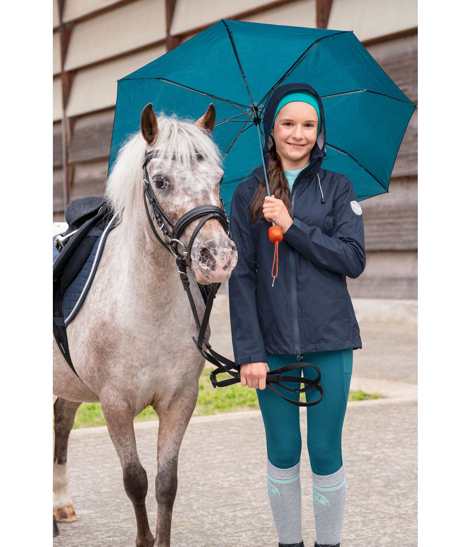 Ademende, water- (5.000 mm) en winddichte regenjas voor kinderen. Hoge kraag met verstelbare capuchon die opgerold kan worden. Waterdichte 2-weg ritssluiting met kinbescherming, 2 voorzakken met drukknopen, verstelbare mouwwijdte, STEEDS-badge op de mouw en logoprint op de zoom. 100% Polyester.