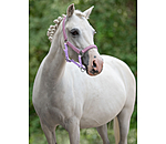 Fonkelend glitter halster met zachte chloropreen rubberen onderlaag op nek, neus en wang bandjes. Gemakkelijk verstelbaar aan de nek- en kinriem. 100 % polypropyleen.