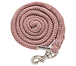 Easy-grip, slijtvast, strak gevlochten touw met kleine maar stevige karabijnhaak voor veulens en shetty´s. Zilver beslag voor de kleuren SS, RB, NV, JA en FZ en voor SR roségoud. 1,5 m. 100 % polypropyleen.