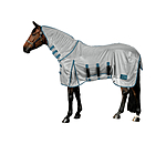 Deken voor vliegenbescherming met een geweldige prijs-kwaliteit verhouding! Klassieke vliegendeken met aangenaaid halsstuk en royale inzet voor optimale bewegingsvrijheid. Het fijnmazige gaasmateriaal houdt minstens 70% van de UV-straling tegen en zorgt zo voor extra bescherming tegen de zon. Elastische frontriem om het kopstuk ook zonder halster vast te zetten. Verstelbare dubbele borstsluiting en 3 klittenbandsluitingen op het halsgedeelte, dievoor een goede maataanpassing zorgen en houden de deken goed gesloten. Gladde, vachtvriendelijke voering in de manen-, staart- en schouderpartij. Verstelbare buikflap met elastische inzet, royale staartflap en staartkoord. Voorziening voor optionele beenkoorden. 100% polyester.