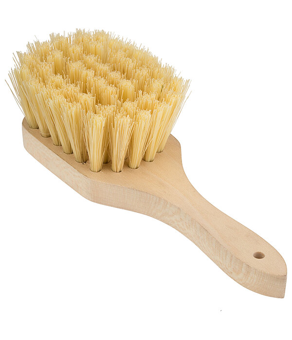 Hoefborstel gemaakt van sisalvezelmengsel voor het reinigen van paardenhoeven. Het handvat maakt het bijzonder praktisch voor het wassen van hoeven. Met houten borstelrug. 21,5 x 6,5 cm.