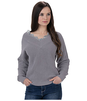 Comfortabele dames sweatjas met warm gevoerde capuchon en trekkoord. De jas heeft een 2-weg-rits, twee ritszakken, een brede geribbelde zoom en borduurwerk op de mouw. 65 % katoen, 35 % polyester.