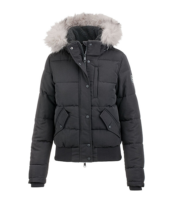 Sportieve, gewatteerde rijblouson met afneembare en verstelbare capuchon met eveneens afneembare kraag van imitatiebont. Water- en windafstotend. Bijzonder zachte vulling van imitatiedons, kraag en capuchon gevoerd met zachte sherpa fleece. Verborgen 2-weg ritssluiting aan de voorkant met kinbeschermer, 2 insteekzakken met drukknopen en een borstzak met rits. Manchetten en zoom met zachte ribboorden. Binnenvoering met subtiel reliëfpatroon, alle zakken gevoerd met fleece. 100 % polyester.