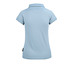 Elegante damespolo van functioneel materiaal. Ademend en sneldrogend. Met knoopsluiting en uitgebreid borduursel in glinsterende metallic garen. Kraag en manchetten van elastisch geribd materiaal met glinsterende metallic strepen. 100 % polyester.