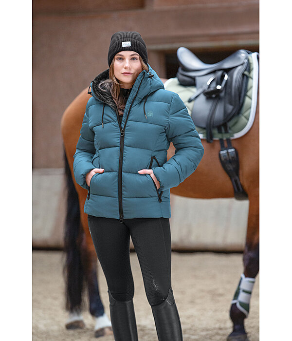 Warme gewatteerde jas met een bijzonder zachte vulling van imitatiedons. De extra hoge, verstelbare capuchon kan aan de achterkant worden vastgezet met een drukknoop en is gevoerd met teddyfleece. Gevoerde 2-weg ritssluiting met kinbeschermer, 2 ritszakken voor, 1 binnenzak, elastische manchetten en zoom en STEEDS badge op de borst. 100% polyester.