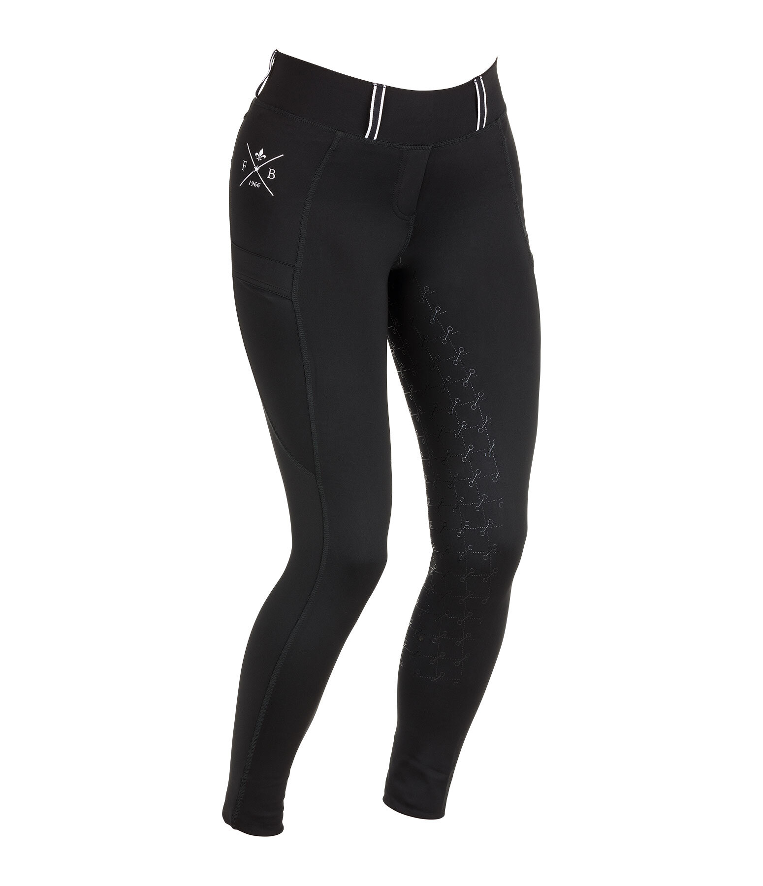 Sportieve rijlegging van hoogwaardig, rekbaar 4-weg stretchmateriaal met zitvlak van siliconen. Ademend en sneldrogend. Brede tailleband met riemlussen afgezet met contrasterende bandjes. 2 zijzakken voor mobieltjes, geen knienaden, soepele pijpzoom, Felix Bühler prints. Perfecte look met 2 fakezakken met glitter tape aan de achterkant. 85 % nylon, 15 % elastaan.