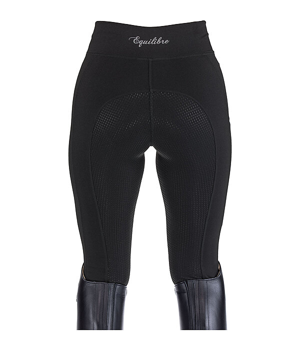 Geweldige paardrijlegging gemaakt van een rekbaar, superzacht stretchmateriaal met een volledig siliconen zitvlak. Onverslaanbaar waard voor je geld. Ademend, sneldrogend, 4-WAY stretch. Extra brede tailleband, insteekzak voor mobiele telefoon op het been, geen knienaden, soepele beenuiteinden. 89 % polyester, 11 % elastaan.
