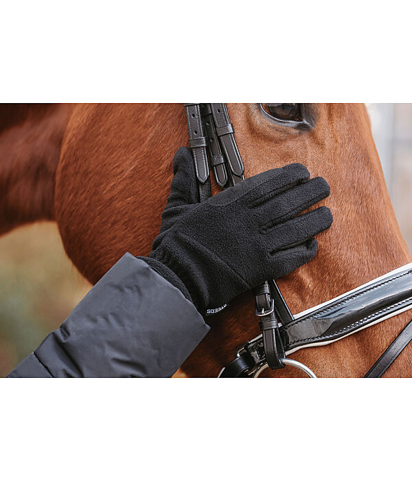 Warme fleece handschoen met zachte imitatielederen grip. 100% polyester.