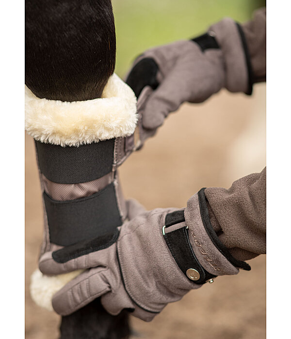 Superzachte winter rijhandschoen van STEEDS met warme fleeceen fantastisch draagcomfort. De zachte fleecevoering zorgt ook op koude winterdagen voor een goede isolatie en houdt de gevoelige vingers aangenaam warm. Bijzonder praktisch en voor een uitstekende grip zorgt het gripvervangende materiaal van het leder van de geïntegreerde versterking aan de randen van de hand en langs de teugel tussen ring en pink. De eenhandige drukknoopsluiting aan de pols zorgt voor een veilige pasvorm. De behaaglijke Luzern winterrijhandschoen voorkomt blaren en onaangename wrijving door zich individueel aan de hand aan te passen. Een ander leuk detail is de decoratieve bies over de basisgewrichten van de vingers. 100% polyester.