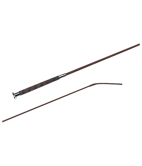Dressuurzweep met een rubberen anti-slip greep en een brede, zilverkleurige/rosegouden of mat zwarte knop.