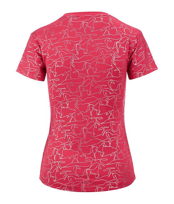 Chique functioneel shirt met korte mouwen en prachtige, metallic all-over paardenprint. Ademend en sneldrogend. 88% polyester, 12% elastaan.
