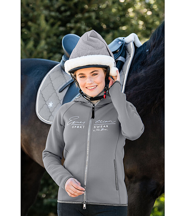 Kerstelijke glittermuts met teddyfleece rand en pompom. Kan over de cap gedragen worden. Met verstelbaar elastiek voor een betere pasvorm. 100% polyester.