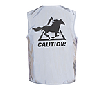 Waarschuwingsvest met hoge zichtbaarheid, rits aan de voorkant, mesh inzetstukken aan de zijkanten en extra waarschuwingslabel op de achterkant. EN 471. 100 % polyester.