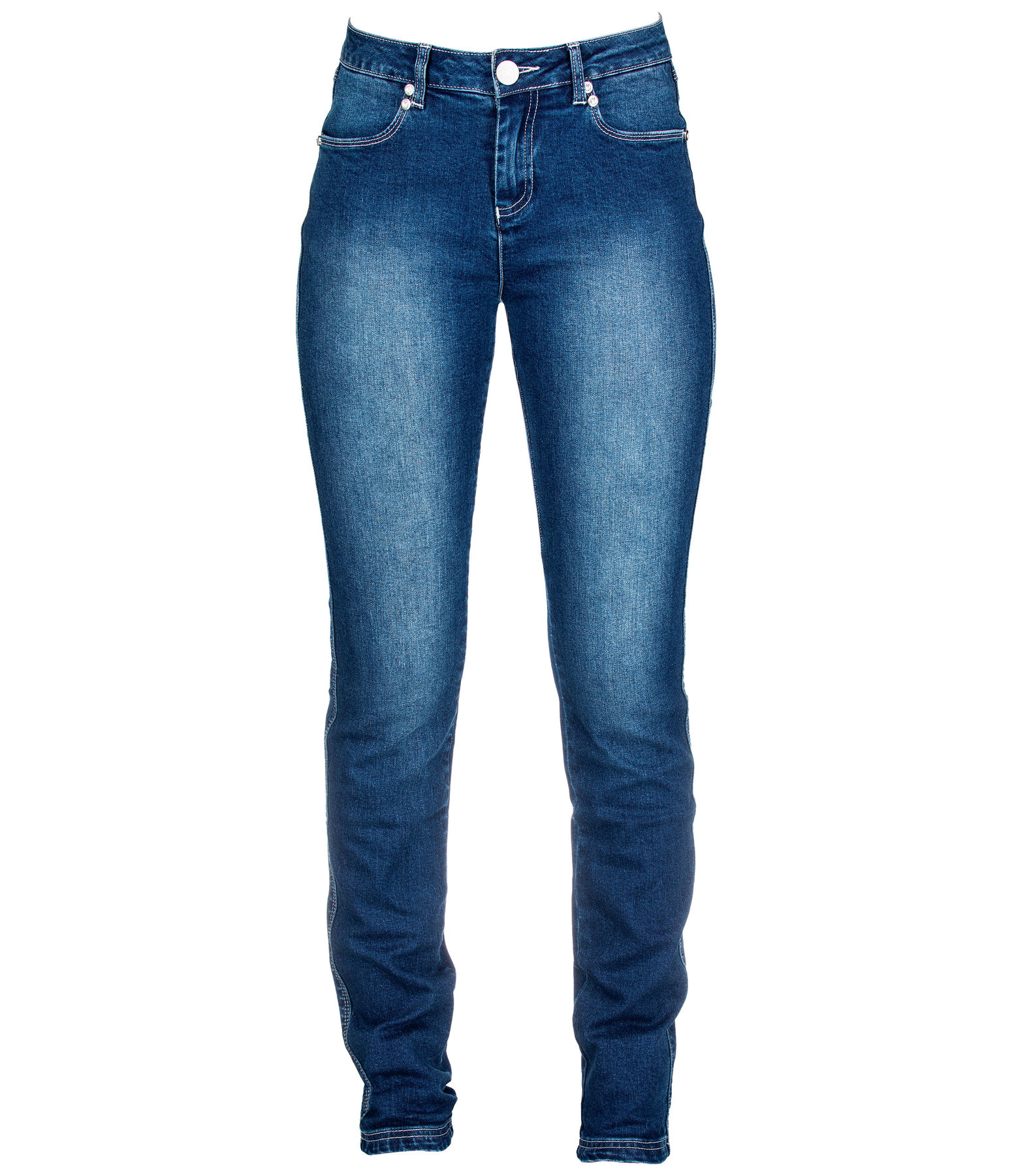 Mooie damesjeans met geborduurde bloemen op de dij en de achterzak. Deze jeans kenmerkt zich door een normale taille en de smalle broekspijpen. Hij is niet alleen ideaal om paard te rijden, maar met zijn optimale draagcomfort kan het ook dagelijks gedragen worden. 98 % katoen, 2 % elastaan.