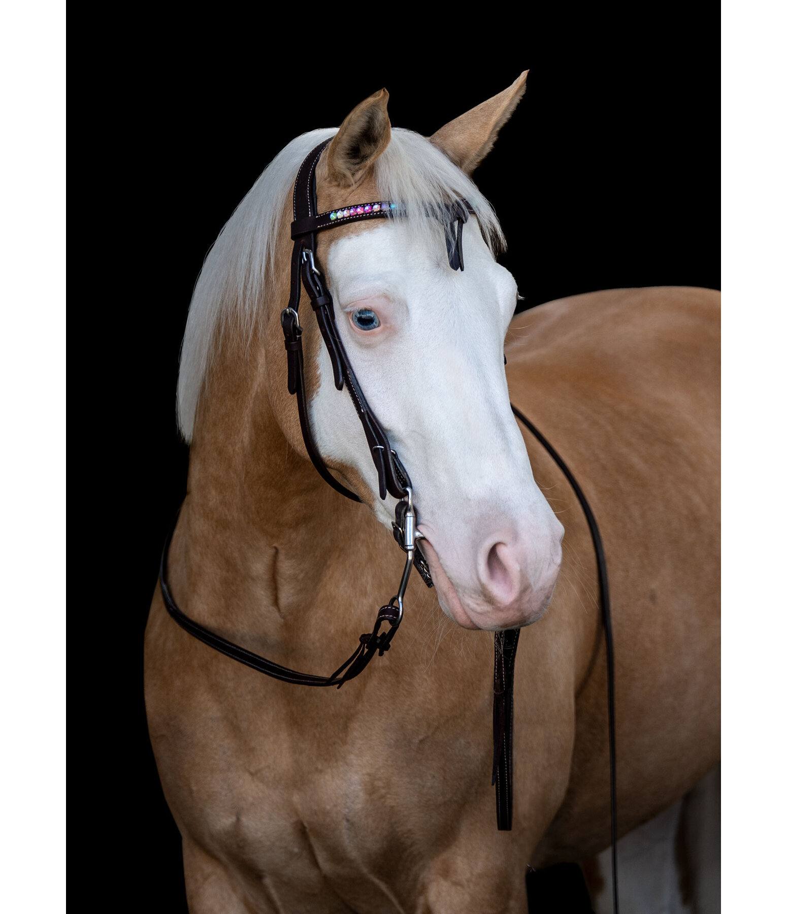 Innovatief, anatomisch gevormd kopstuk voor westernhoofdstellen voor een betere drukverdeling. Zacht onderlegd, van hoogwaardig leder. Incl. keelriem.