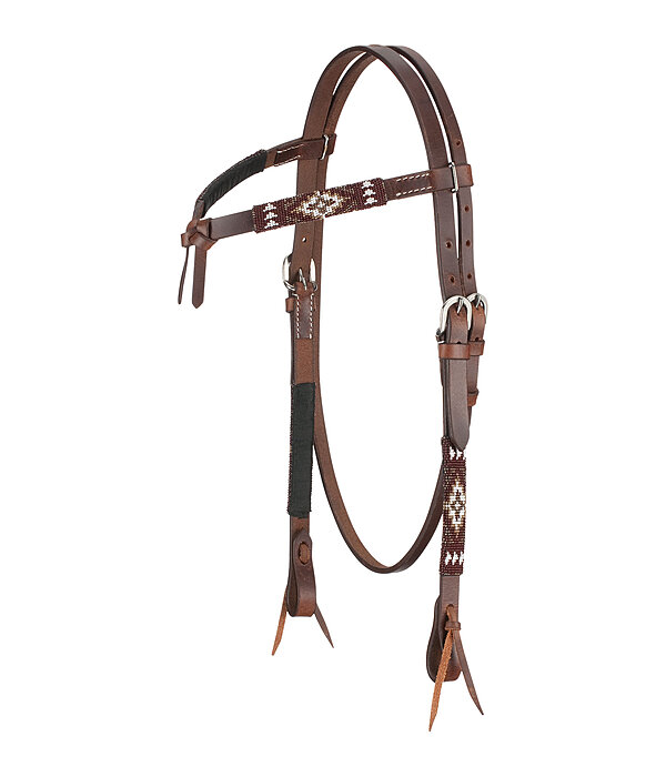 Western hoofdstel met kralenpatroon in Azteekse look gemaakt van hoogwaardig leder. Futurity Knot, Tie-End. Verstelbaar aan beide zijden bij de bakstukken.