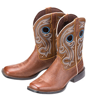 Een echte westernoutfit is niet compleet zonder westernlaarzen. Boots voor westernrijden zijn meestal kuithoog en hebben lussen opzij aan het uiteinde van de schacht, zodat je ze gemakkelijk kunt aantrekken. De spoorhouders op de hiel zijn heel praktisch voor het aanbrengen en op zijn plaats houden van sporen.
